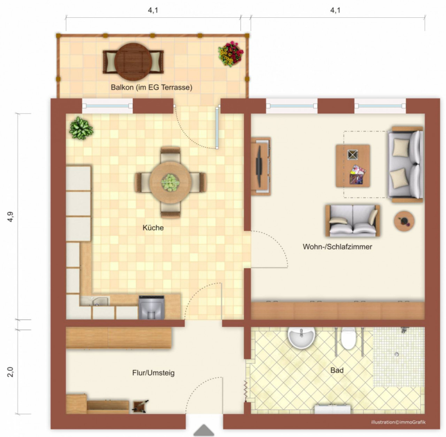 Barrierefreie 1-Raum-Wohnung mit Terrasse