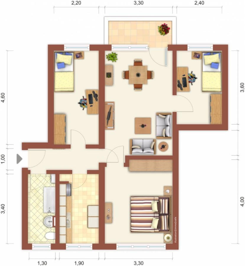 Bitte beachten Sie, dass entgegen der Darstellung im Grundriss, diese Wohnung mit einer Dusche ausgestattet ist.