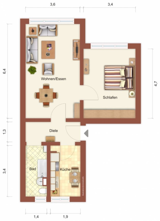 Bad mit Fenster, Bad mit Wanne, Highspeed-Internet verfügbar, Keller, Kochmöglichkeit Elektro, Küche mit Fenster, Trockenboden