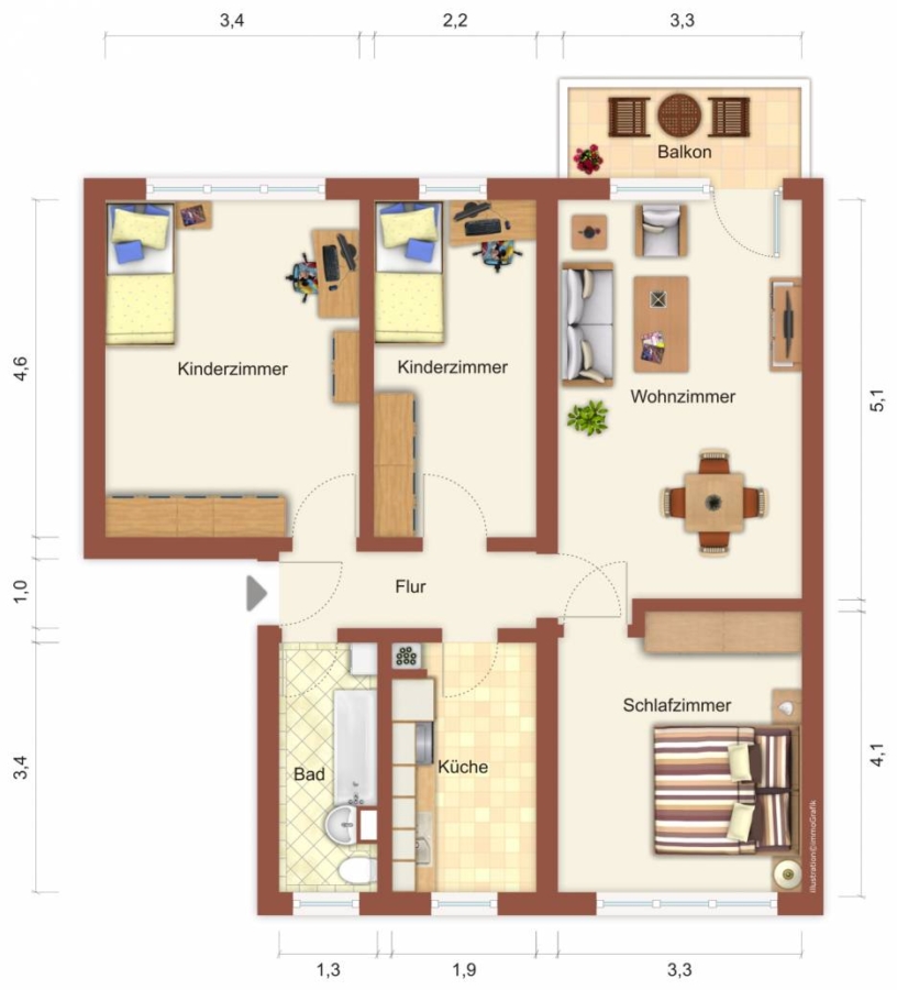 Wohnfläche ca.74,71 m²
