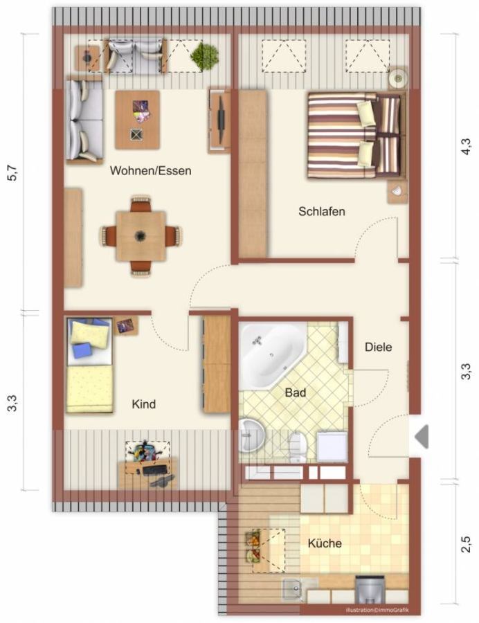 Wohnfläche ca.62,12 m²