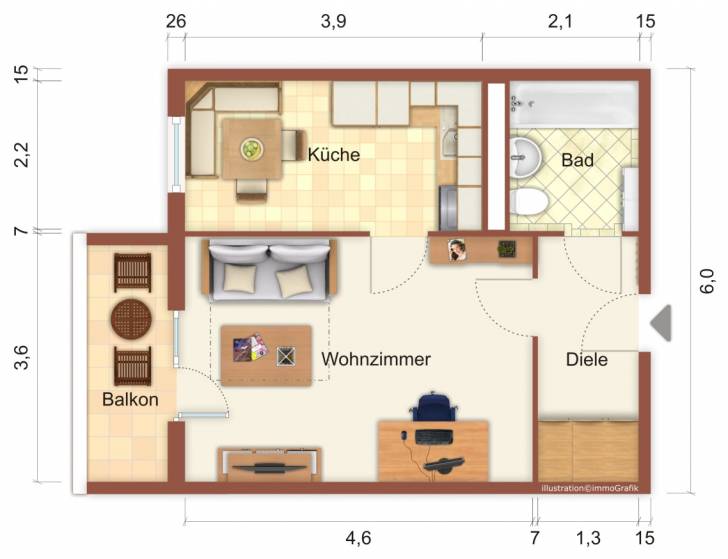 Wohnfläche ca.35,49 m²