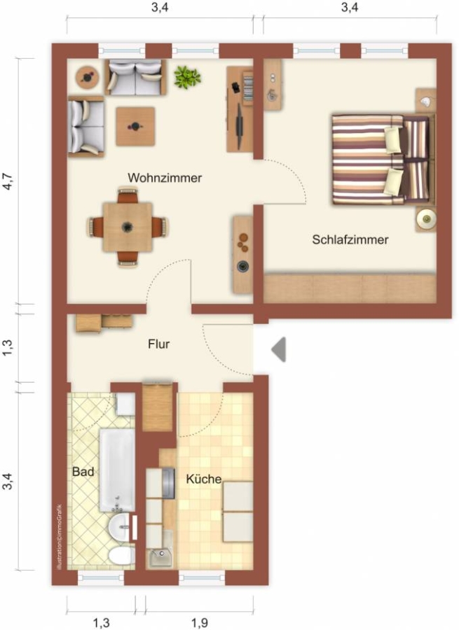 Bad mit Fenster, Bad mit Wanne, Gastherme (WW), Highspeed-Internet verfügbar, Keller, Kochmöglichkeit Elektro, Küche mit Fenster, Trockenboden