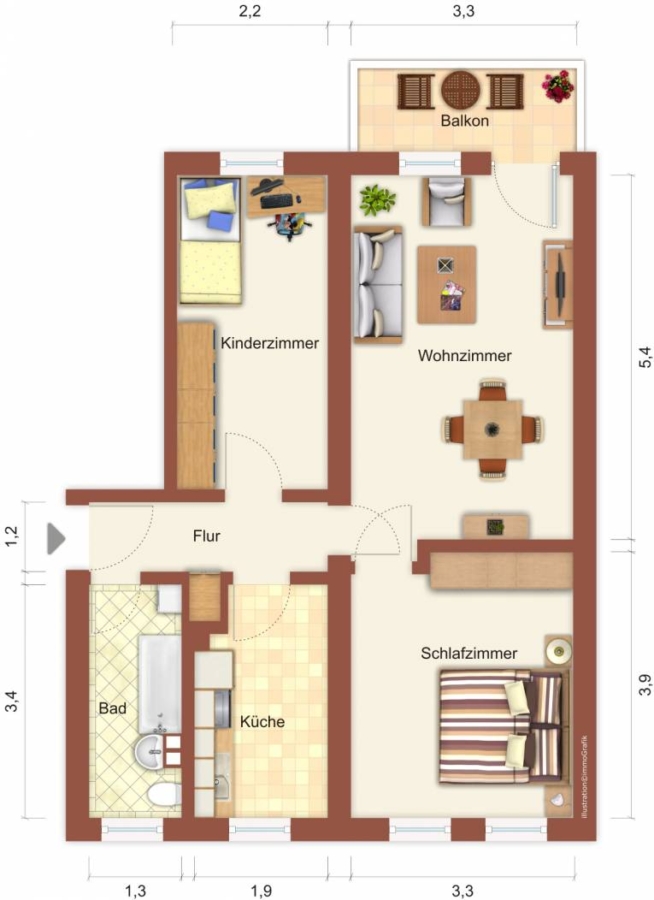 Bad mit Fenster, Bad mit Wanne, Balkon/ Loggia, Gastherme (WW), Highspeed-Internet verfügbar, Keller, Kochmöglichkeit Elektro, Küche mit Fenster, Trockenboden