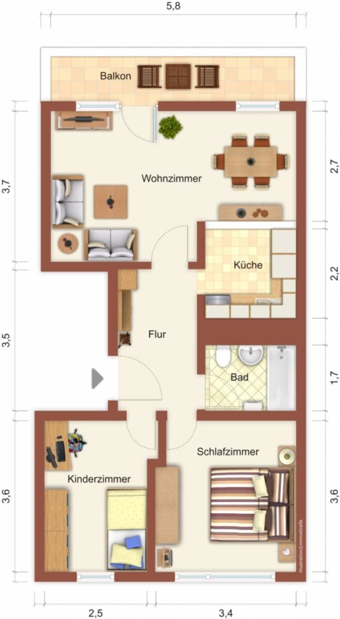 Wohnfläche ca.58,31 m²