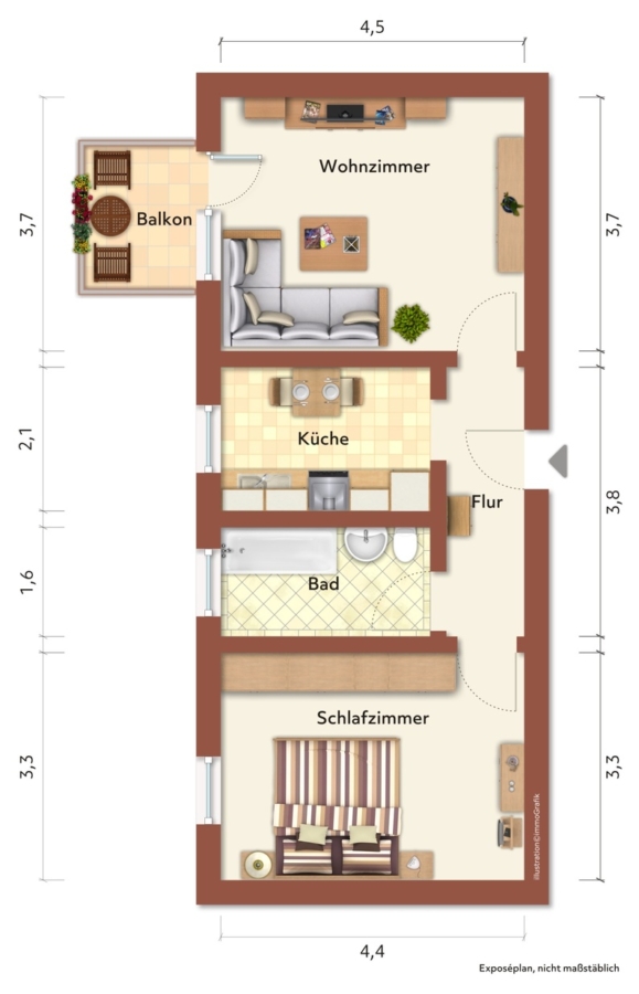 Wohnfläche ca.48,59 m²