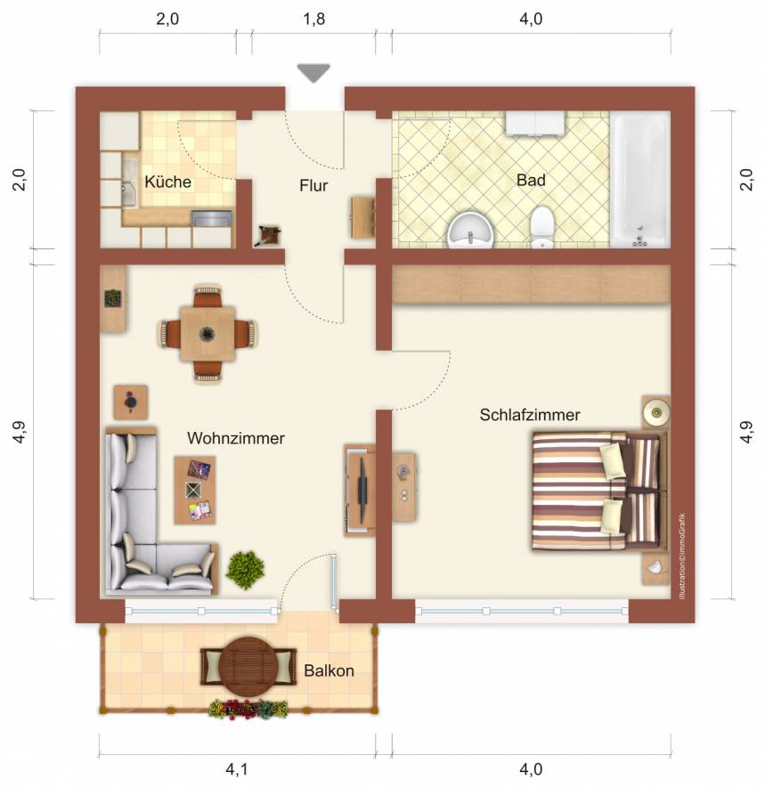 Wohnfläche ca.58,10 m²