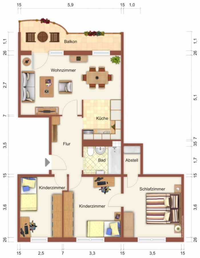 Preisbewusste Wohnung für die junge Familie